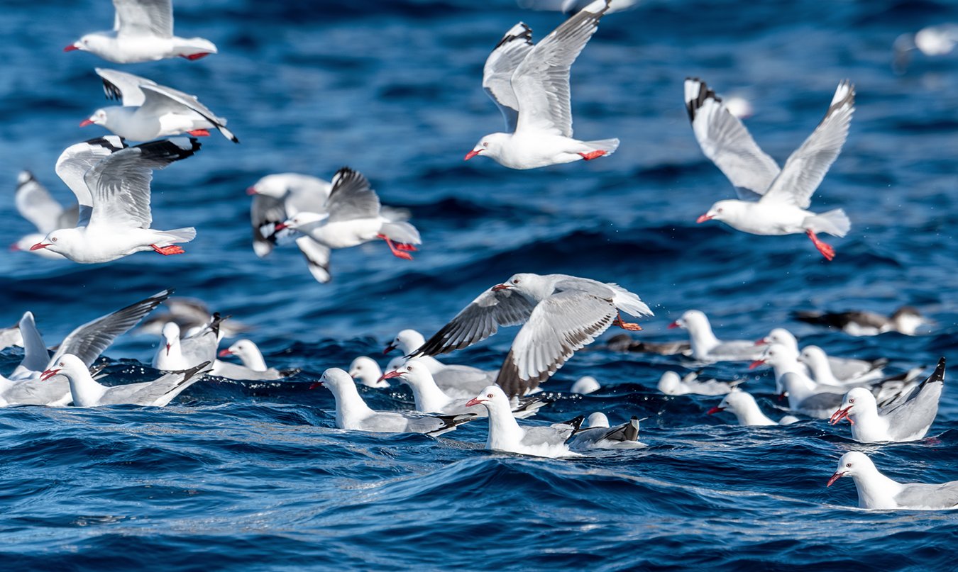 During the huge feeding frenzy workups there is often several hundred Red-billed Gulls mixed in among thousands of Buller’s Shearwaters and Fairy Prion, adding even more energy to the spectacle.